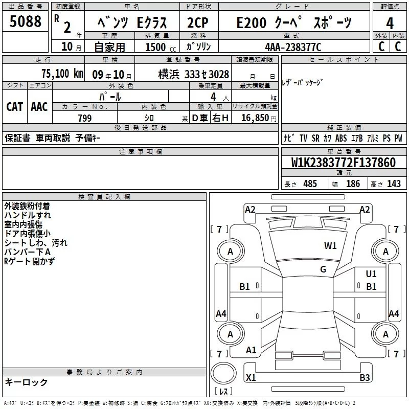 Mercedes-Benz E CLASS с аукциона Японии TAA Yokohama лот № 5088