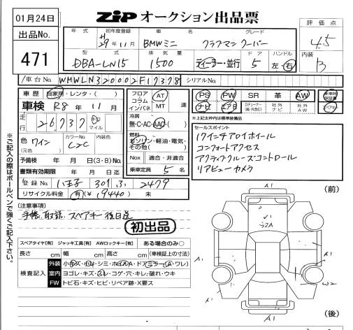 BMW MINI с аукциона Японии ZIP Tokyo лот № 471
