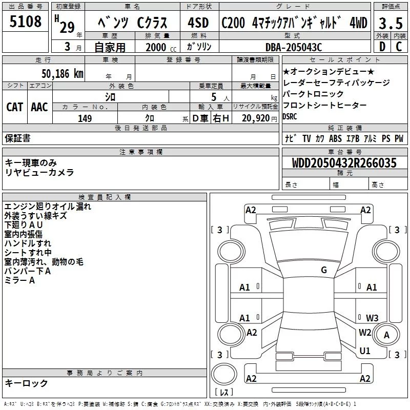 Mercedes-Benz C CLASS с аукциона Японии TAA Yokohama лот № 5108
