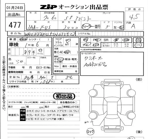 Audi S5 с аукциона Японии ZIP Tokyo лот № 477