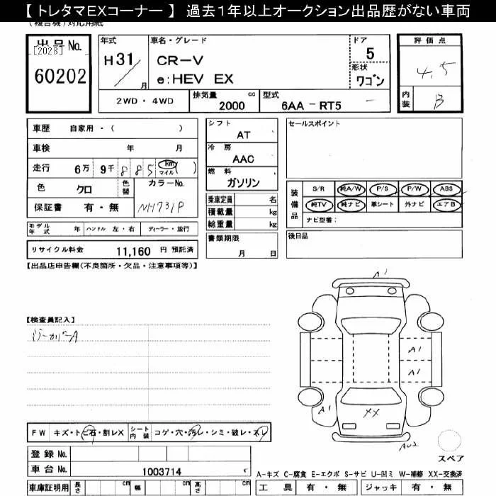 Honda CR-V с аукциона Японии JU Gifu лот № 60202
