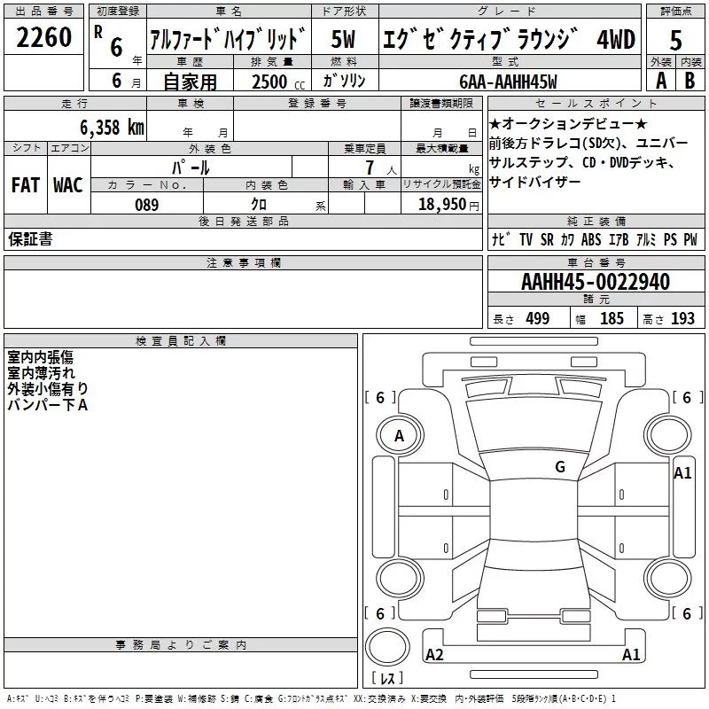 Toyota ALPHARD с аукциона Японии TAA Hyogo лот № 2260