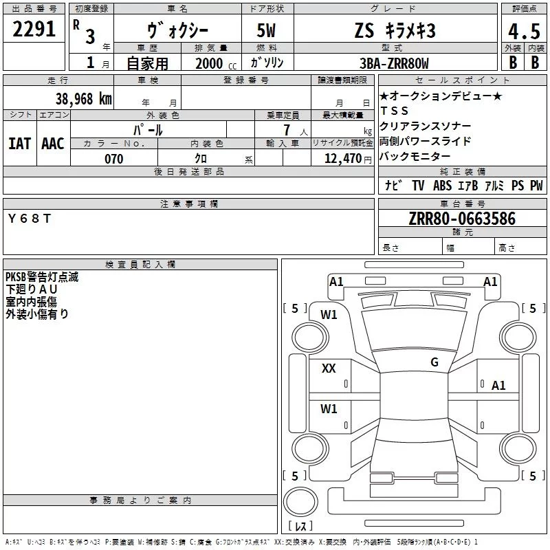 Toyota VOXY с аукциона Японии TAA Hyogo лот № 2291