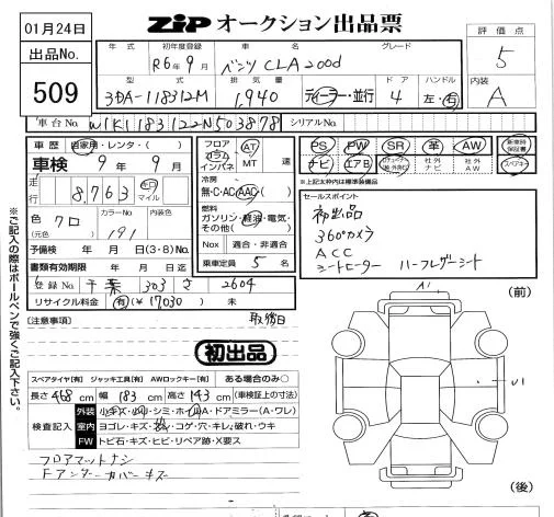 Mercedes-Benz CLA CLASS с аукциона Японии ZIP Tokyo лот № 509