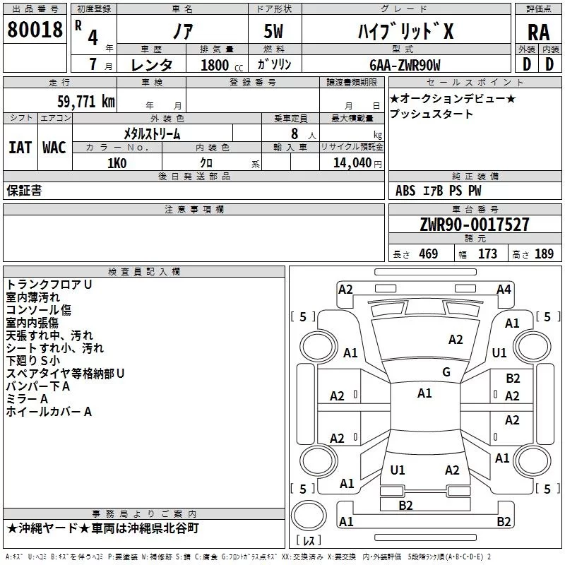 Toyota NOAH с аукциона Японии TAA Yokohama лот № 80018