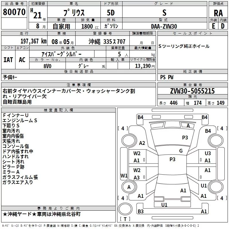 Toyota PRIUS с аукциона Японии TAA Yokohama лот № 80070