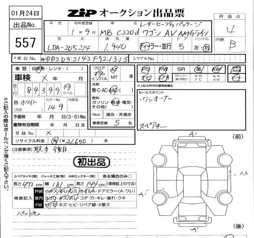 Mercedes-Benz C CLASS WAGON с аукциона Японии ZIP Tokyo лот № 557