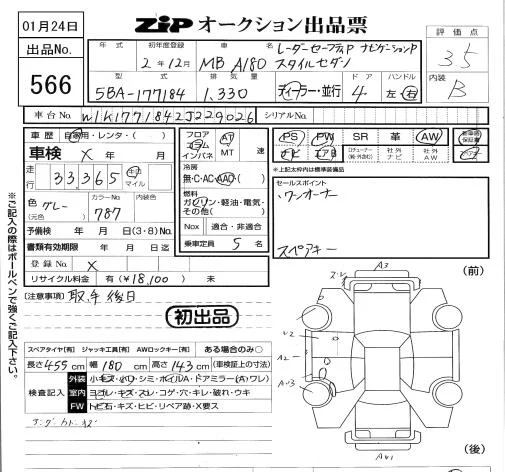 Mercedes-Benz A CLASS с аукциона Японии ZIP Tokyo лот № 566