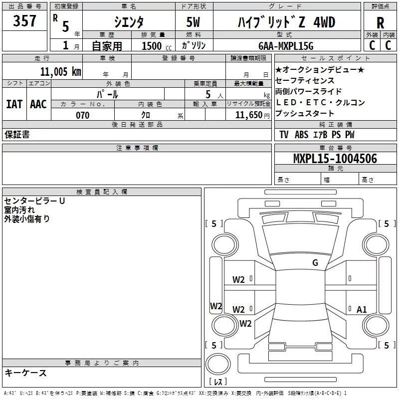 Toyota SIENTA с аукциона Японии TAA Yokohama лот № 357