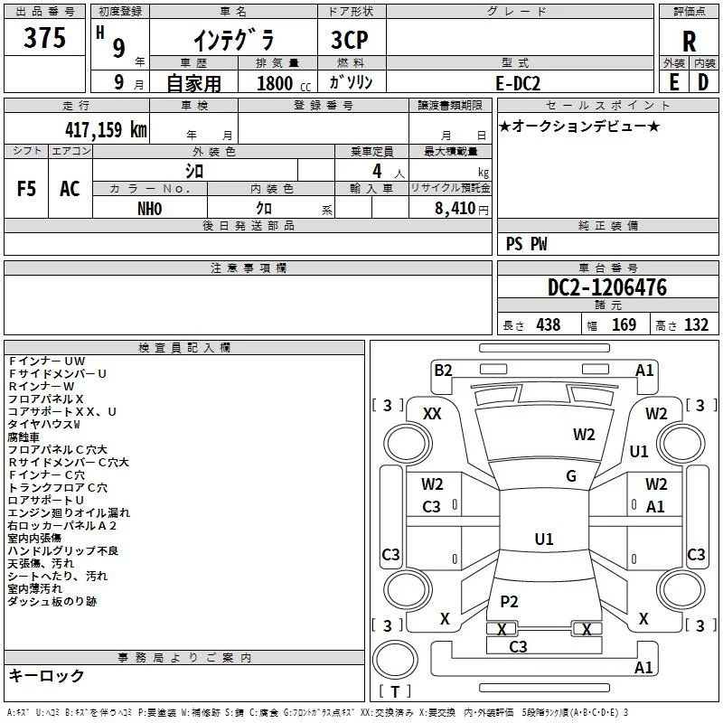 Honda INTEGRA с аукциона Японии TAA Yokohama лот № 375
