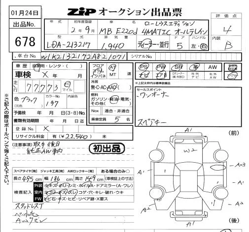 Mercedes-Benz E CLASS WAGON с аукциона Японии ZIP Tokyo лот № 678