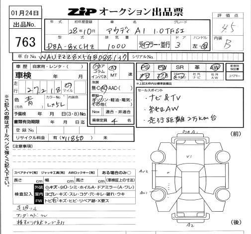 Audi A1 с аукциона Японии ZIP Tokyo лот № 763
