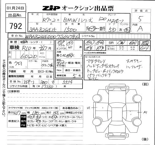 BMW 1-Series с аукциона Японии ZIP Tokyo лот № 792