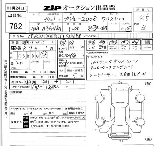 Peugeot 2008 с аукциона Японии ZIP Tokyo лот № 782