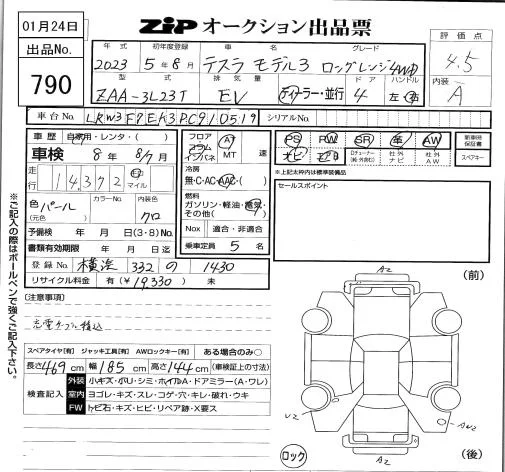 Tesla MODEL3 с аукциона Японии ZIP Tokyo лот № 790