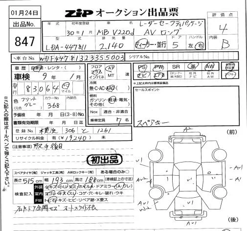 Mercedes-Benz V CLASS с аукциона Японии ZIP Tokyo лот № 847