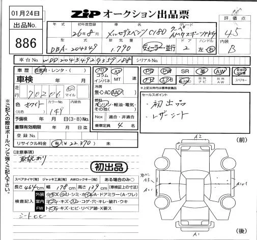 Mercedes-Benz C CLASS с аукциона Японии ZIP Tokyo лот № 886