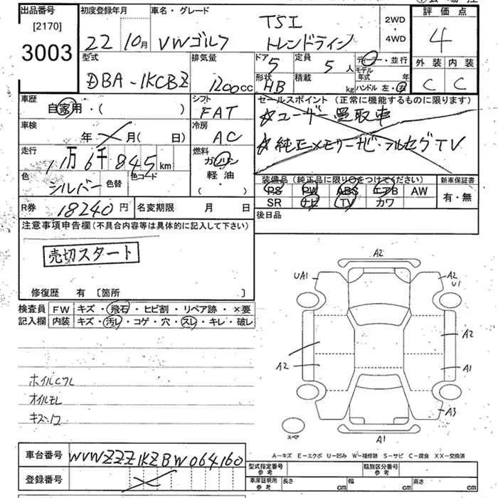 Volkswagen GOLF с аукциона Японии JU Tokyo лот № 3003