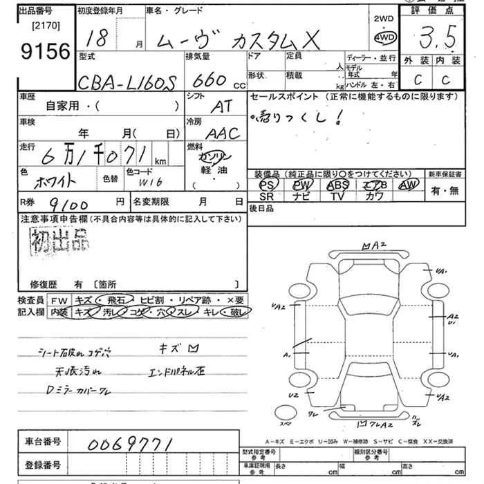 Daihatsu MOVE с аукциона Японии JU Tokyo лот № 9156
