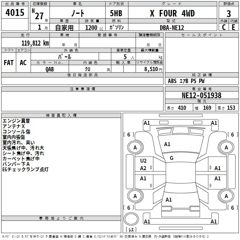 Nissan NOTE с аукциона Японии TAA Hiroshima лот № 4015