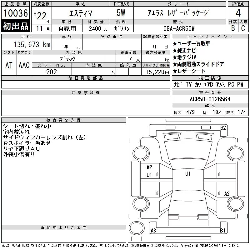 Toyota ESTIMA с аукциона Японии CAA Tokyo лот № 10036