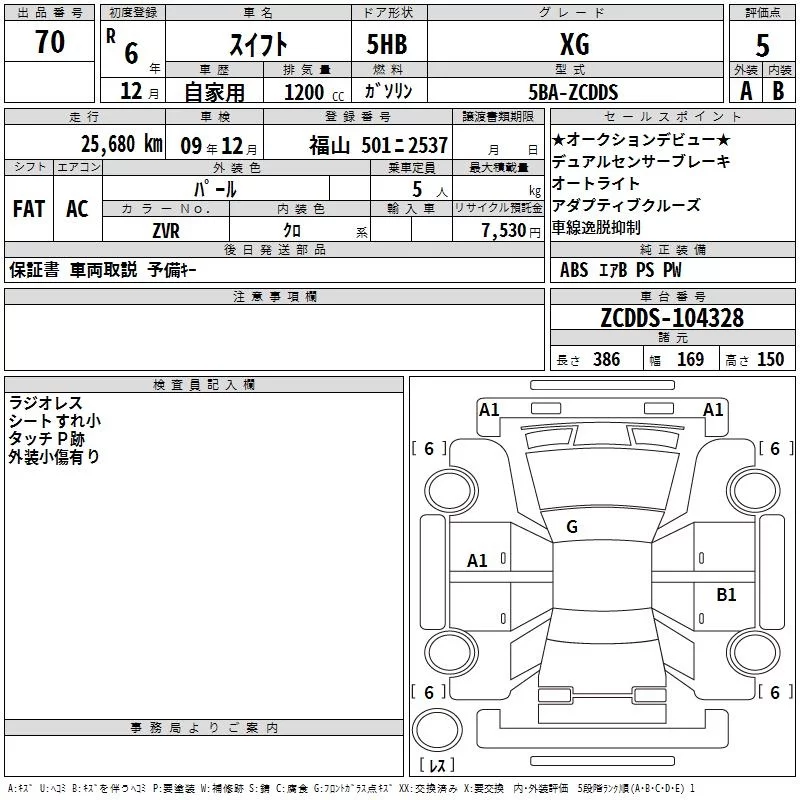 Suzuki SWIFT с аукциона Японии TAA Hiroshima лот № 70