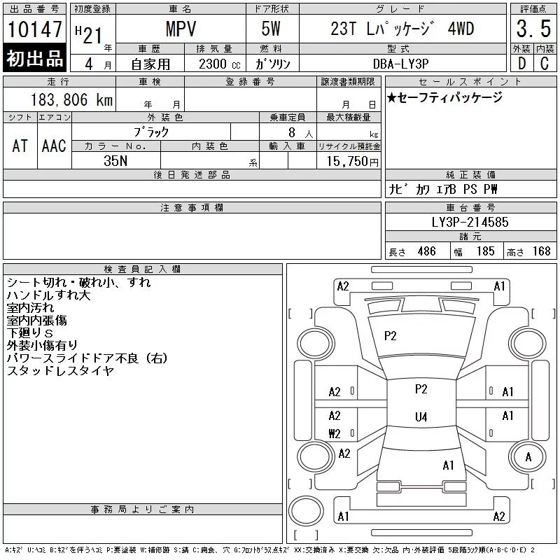 Mazda MPV с аукциона Японии CAA Tokyo лот № 10147