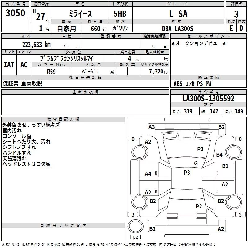 Daihatsu MIRA E S с аукциона Японии TAA Shikoku лот № 3050