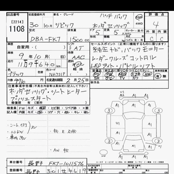 Honda CIVIC с аукциона Японии JU Saitama лот № 1108