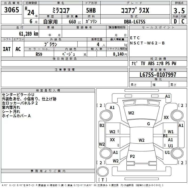 Daihatsu MIRA с аукциона Японии TAA Shikoku лот № 3065