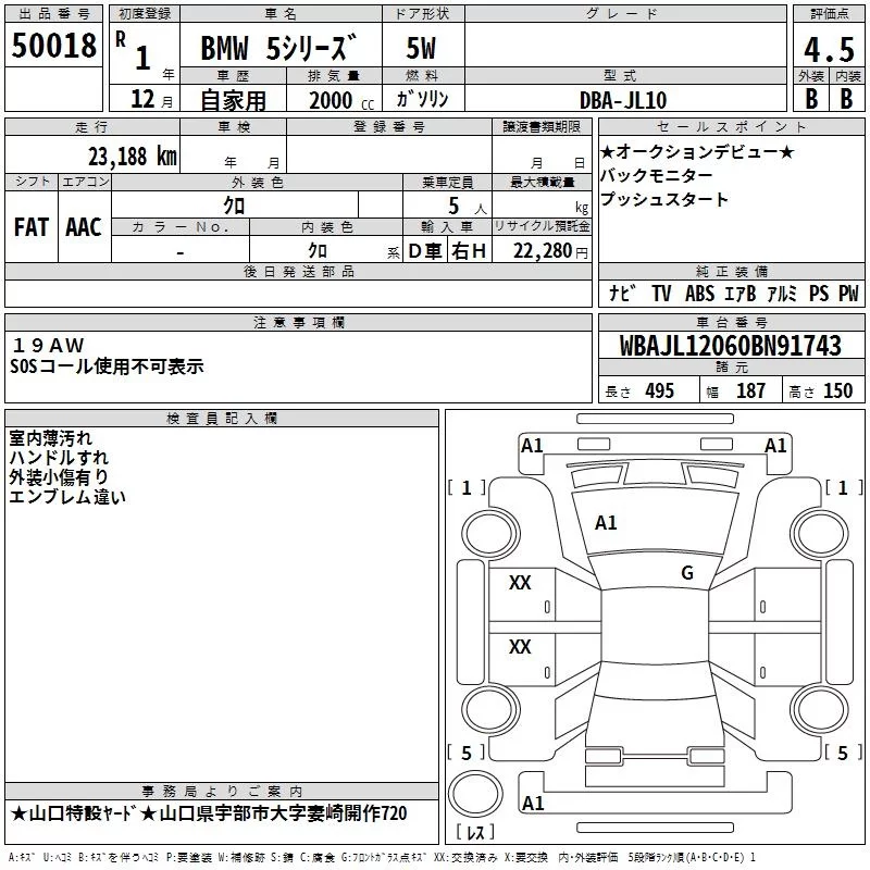 BMW 5-Series с аукциона Японии TAA Hiroshima лот № 50018
