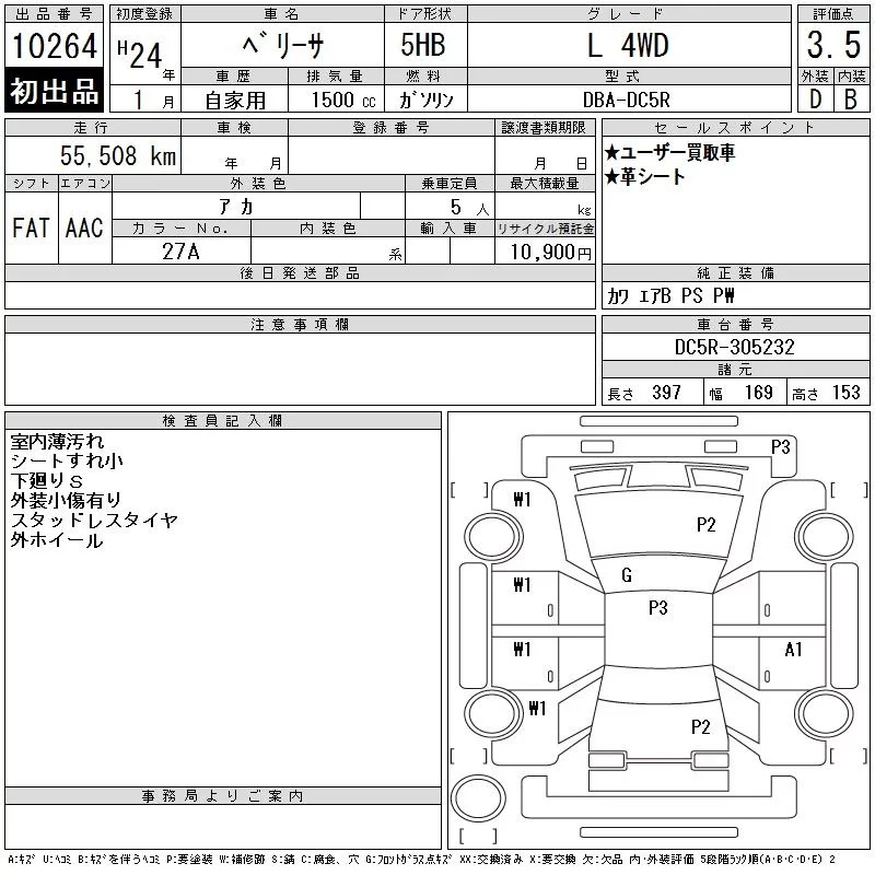 Mazda VERISA с аукциона Японии CAA Tokyo лот № 10264