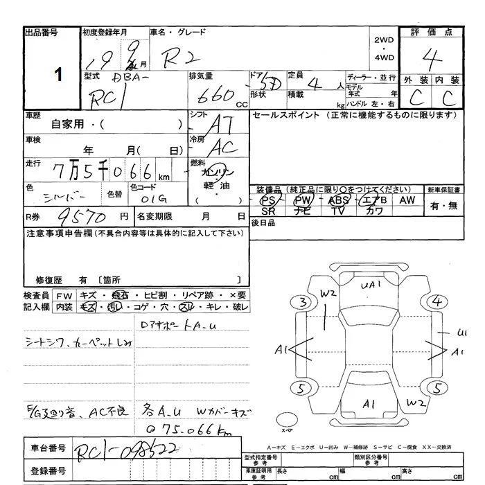 Subaru R2 с аукциона Японии JU Shizuoka лот № 1