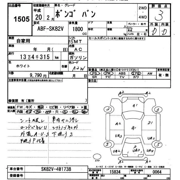 Mazda BONGO VAN с аукциона Японии JU Yamaguchi лот № 1505