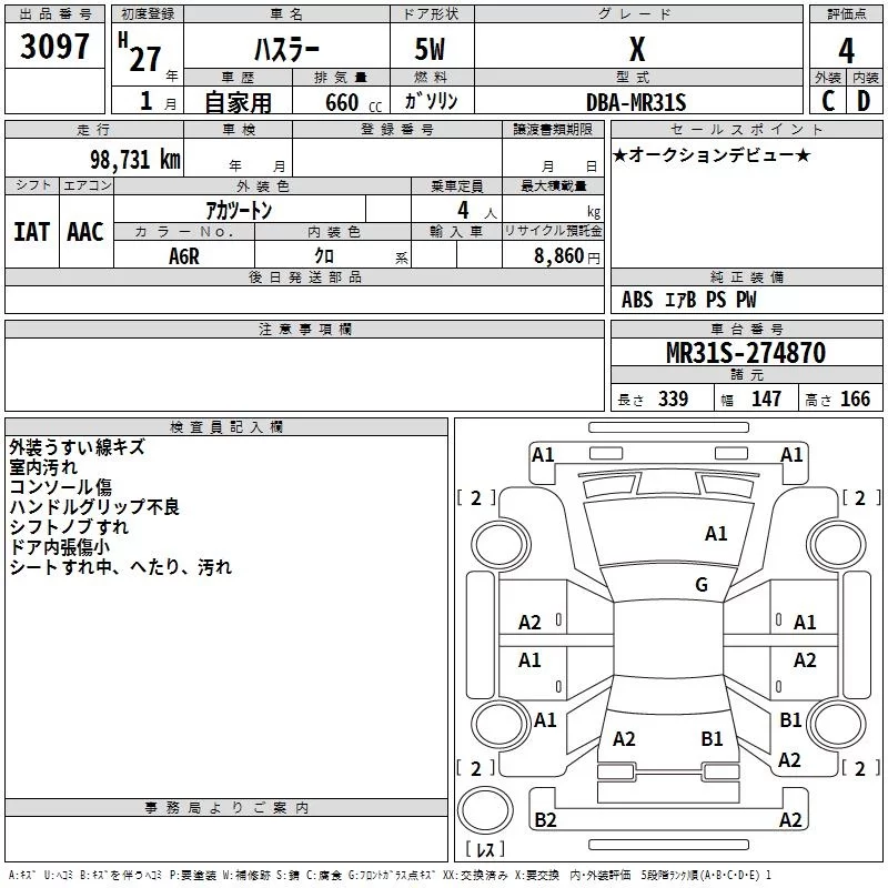Suzuki HUSTLER с аукциона Японии TAA Shikoku лот № 3097