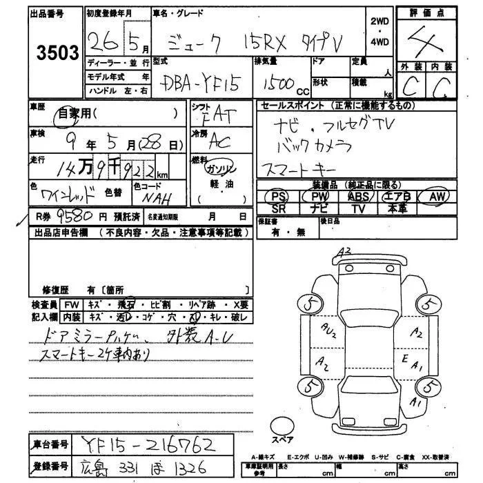 Nissan JUKE с аукциона Японии JU Yamaguchi лот № 3503