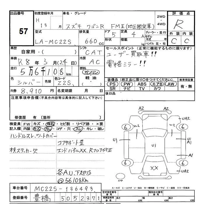 Suzuki WAGON R с аукциона Японии JU Shizuoka лот № 57