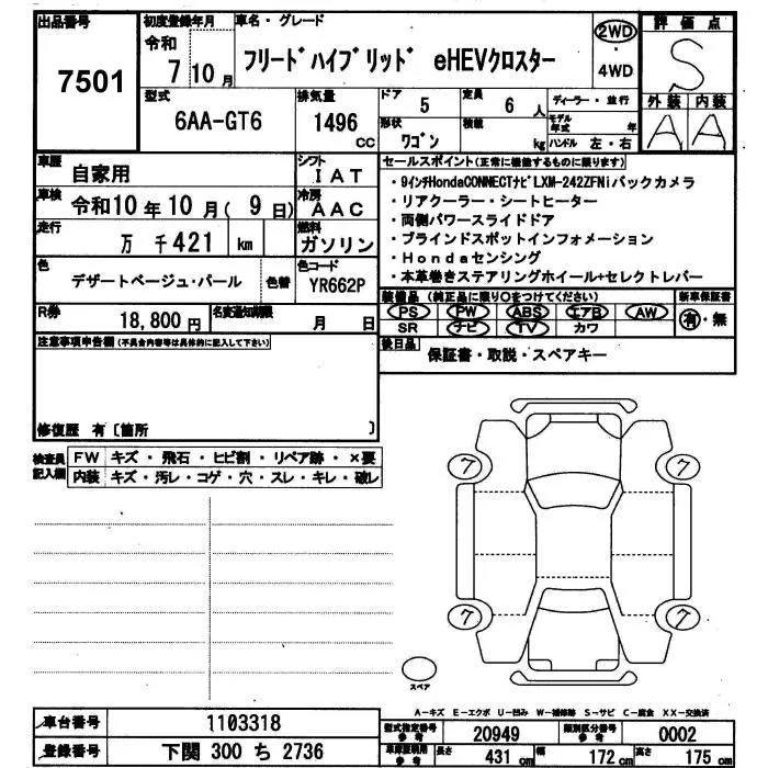 Honda FREED с аукциона Японии JU Yamaguchi лот № 7501
