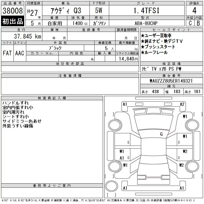 Audi Q3 с аукциона Японии CAA Tokyo лот № 38008