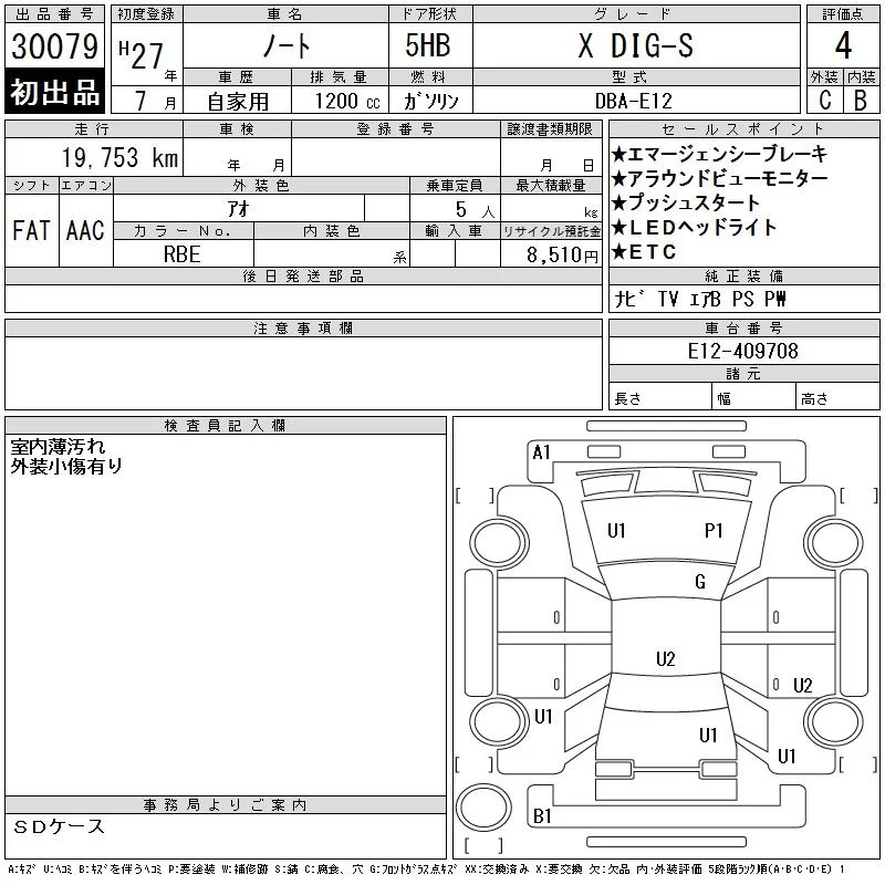 Nissan NOTE с аукциона Японии CAA Tokyo лот № 30079
