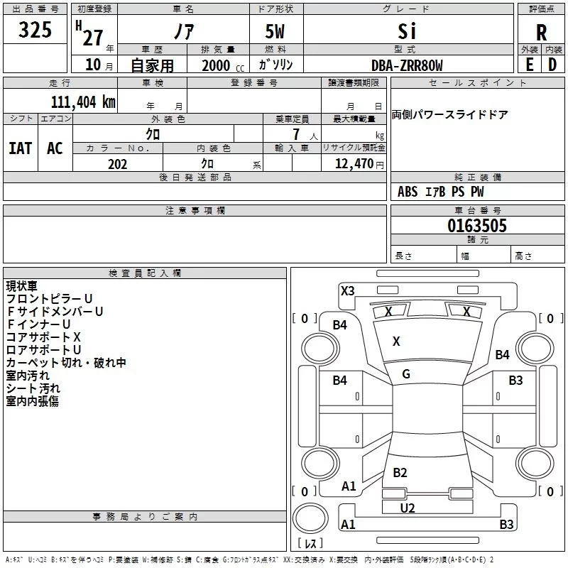 Toyota NOAH с аукциона Японии TAA Kinki лот № 325