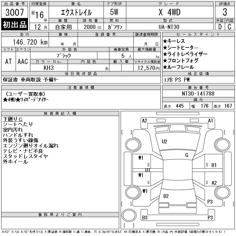 Nissan X-TRAIL с аукциона Японии CAA Tohoku лот № 3007