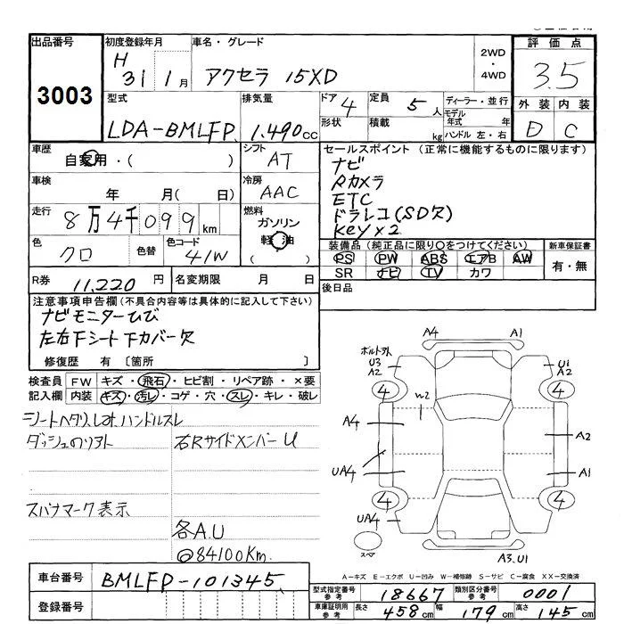 Mazda AXELA с аукциона Японии JU Shizuoka лот № 3003