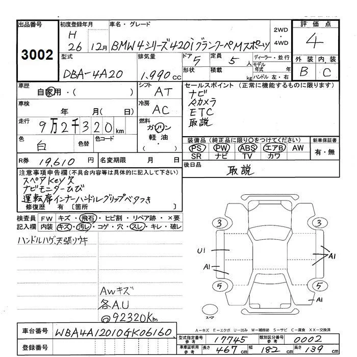 BMW 4-Series с аукциона Японии JU Shizuoka лот № 3002