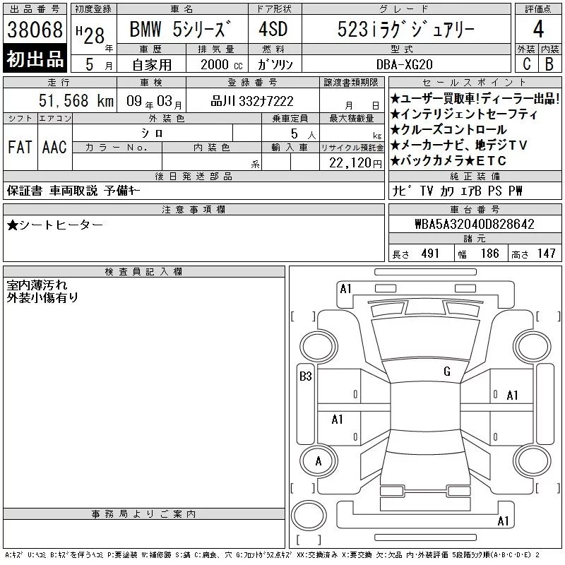 BMW 5-Series с аукциона Японии CAA Tokyo лот № 38068
