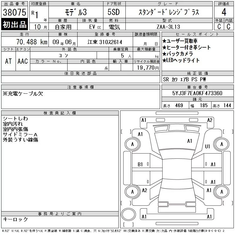Tesla MODEL3 с аукциона Японии CAA Tokyo лот № 38075