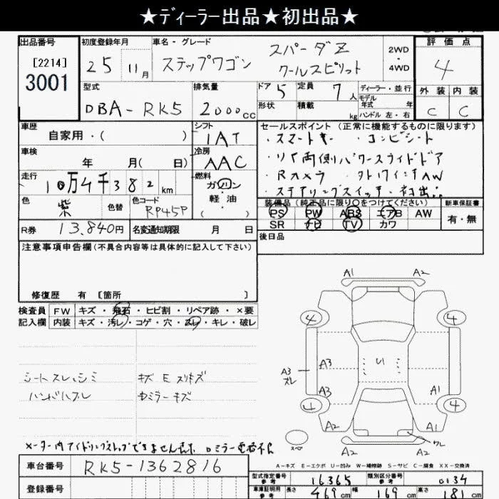 Honda STEP WAGON с аукциона Японии JU Saitama лот № 3001