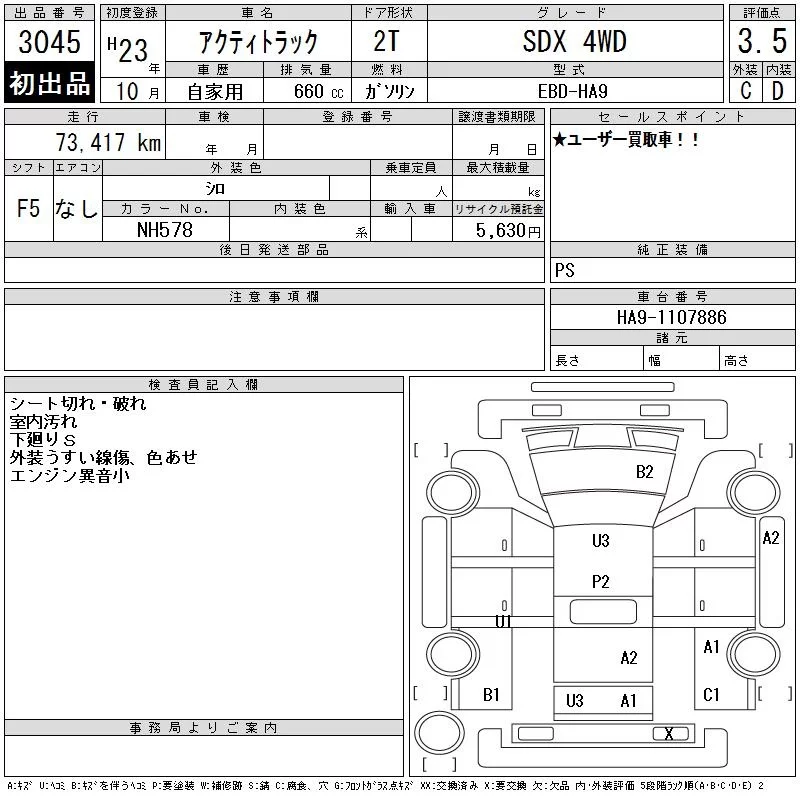 Honda ACTY TRUCK с аукциона Японии CAA Tohoku лот № 3045