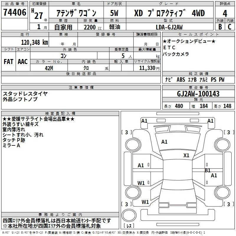Mazda ATENZA WAGON с аукциона Японии TAA Shikoku лот № 74406