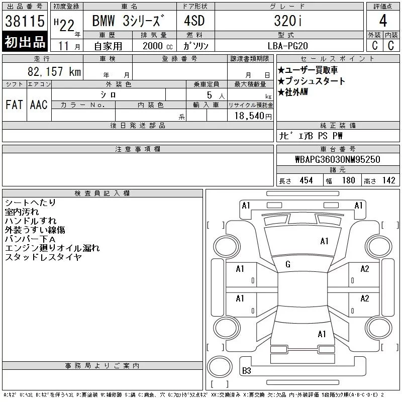 BMW 3-Series с аукциона Японии CAA Tokyo лот № 38115
